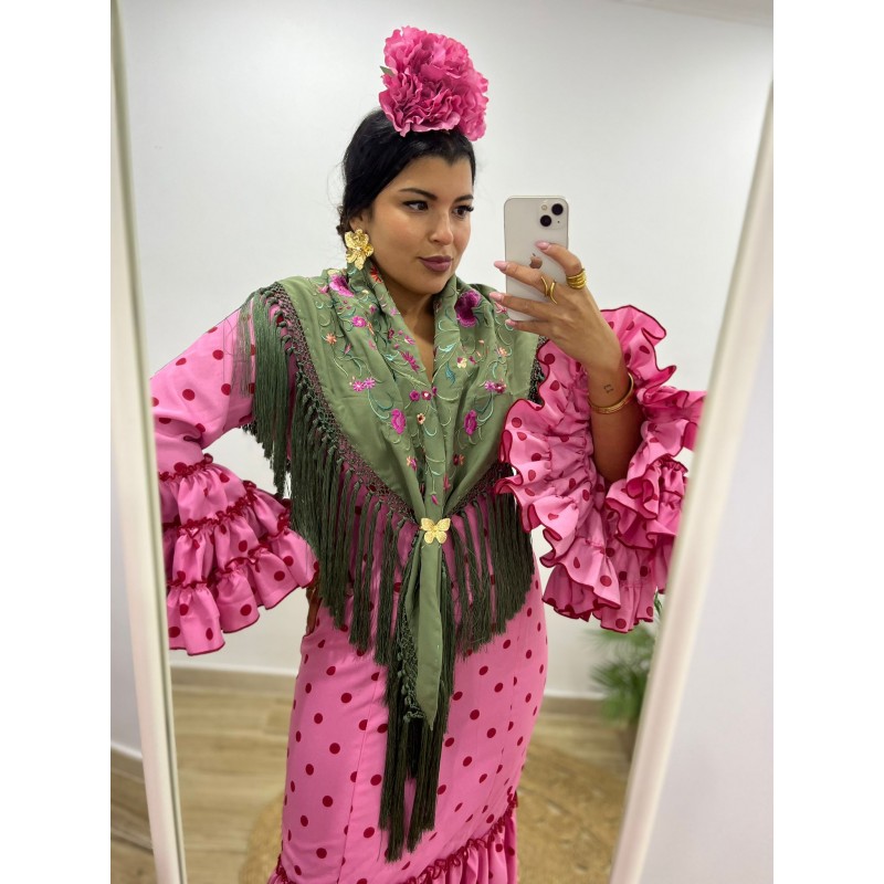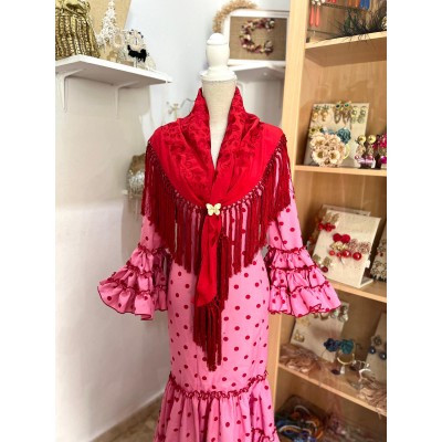 TRAJE CANASTERO JALEO ROSA CHICLE LUNAR ROJO