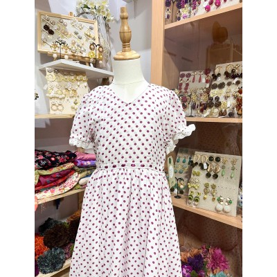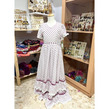 BATA QUEJIO NIÑA BLANCA LUNAR ROSA