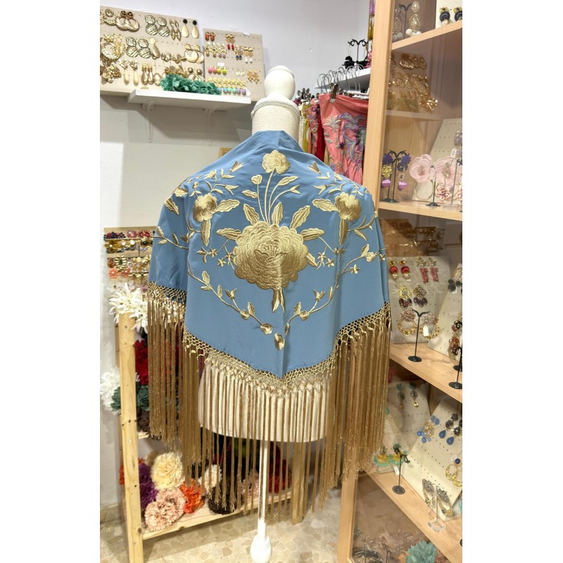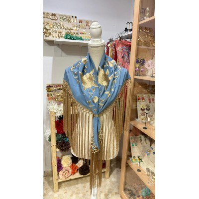 MANTONCILLO LEBRIJANO AZUL DUCADO CON DORADO